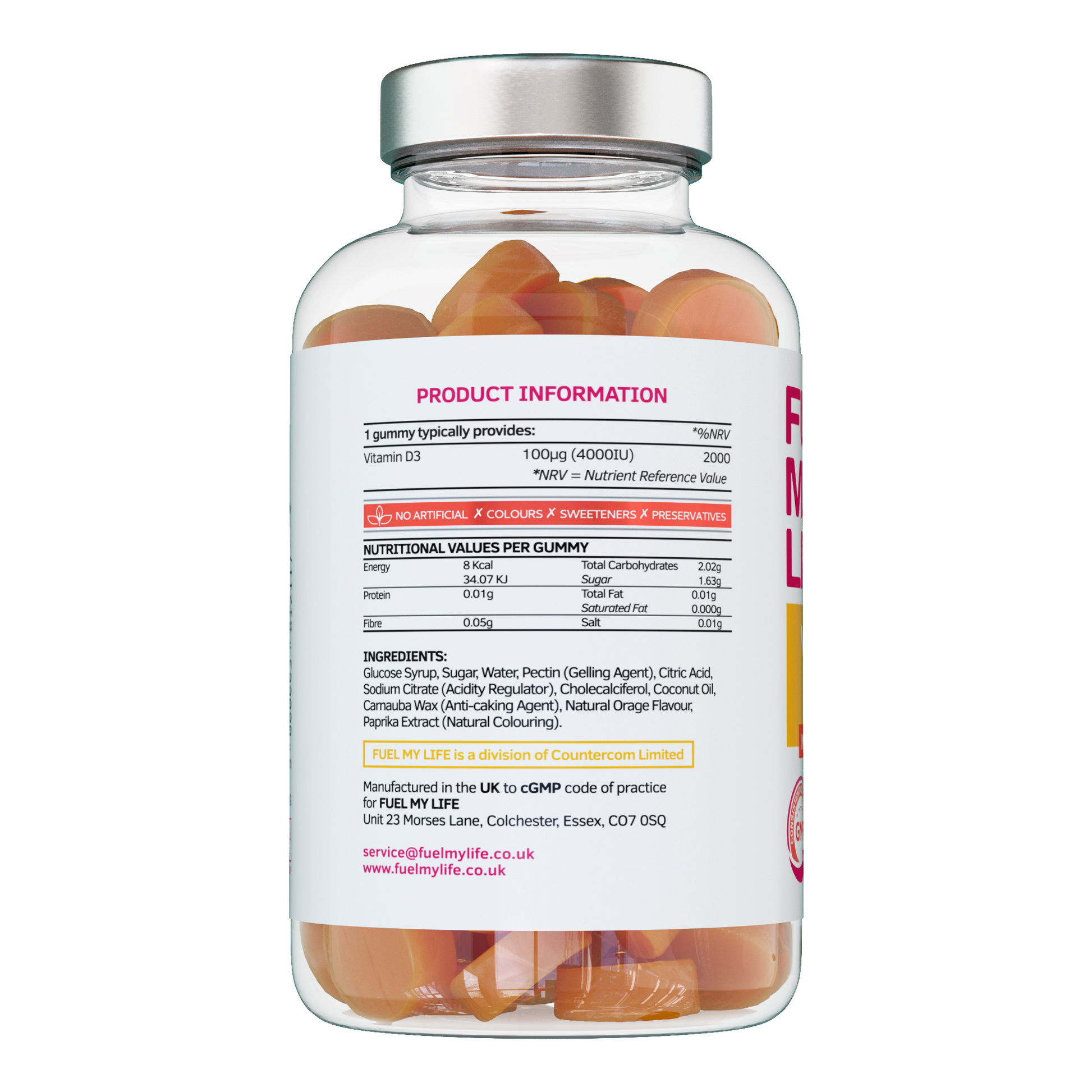 ✔ PURE – Fuel My Life Vitamin D3 4000iu gummies are GMO free and contain No Artificial Colours, Flavours, Sweeteners or Preservatives , they are also Free from Gluten, Lactose, Soya and Yeast. Suitable for Vegetarians
